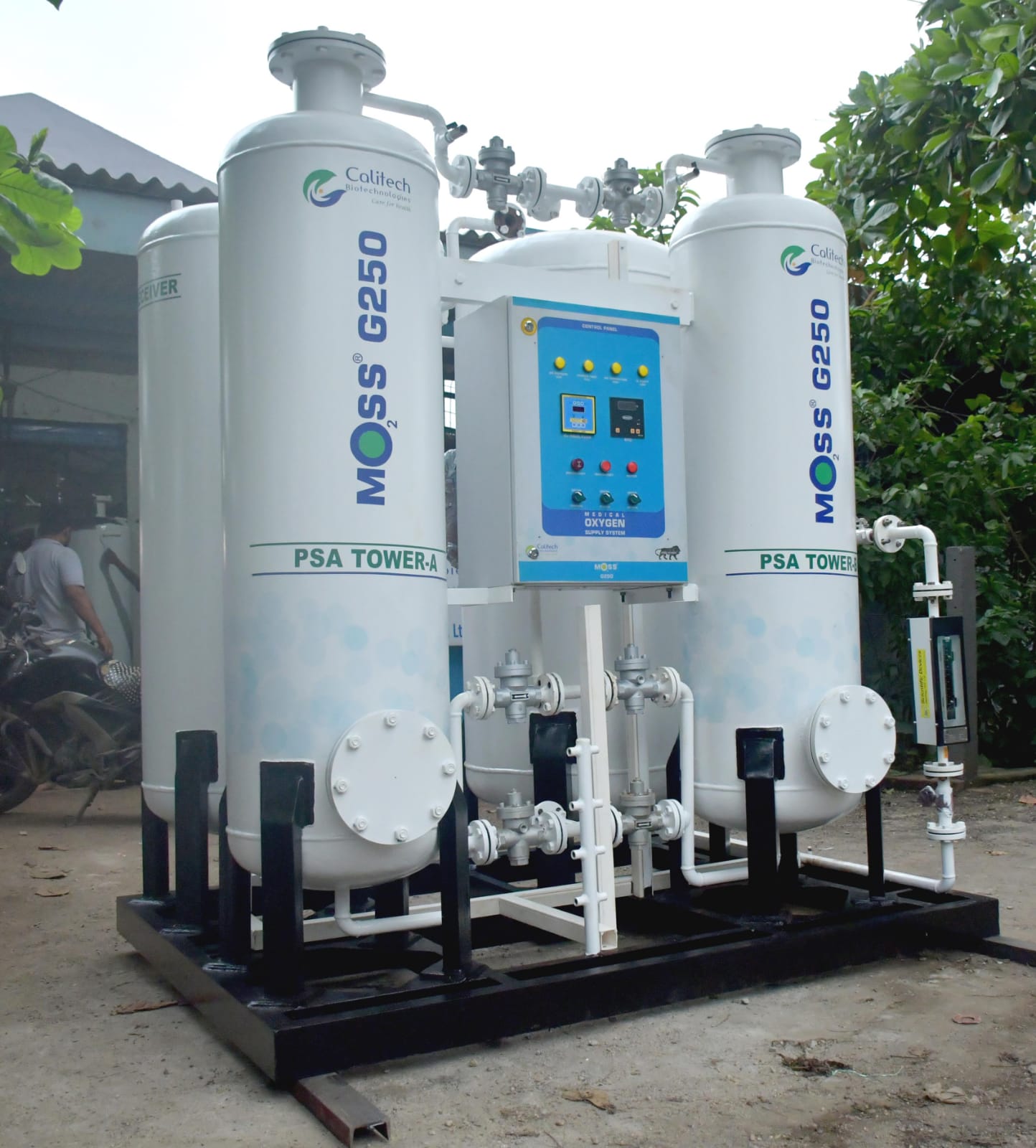 MOSS uses PSA (Pressure Swing Adsorption) technology, which is very mature, well established and time tested. Compressed air is released into an adsorption bed, where zeolite molecular sieves selectively adsorb nitrogen, carbon dioxide, carbon monoxide, etc. The air flow is alternatively regulated to generate a continuous flow of medical grade oxygen.